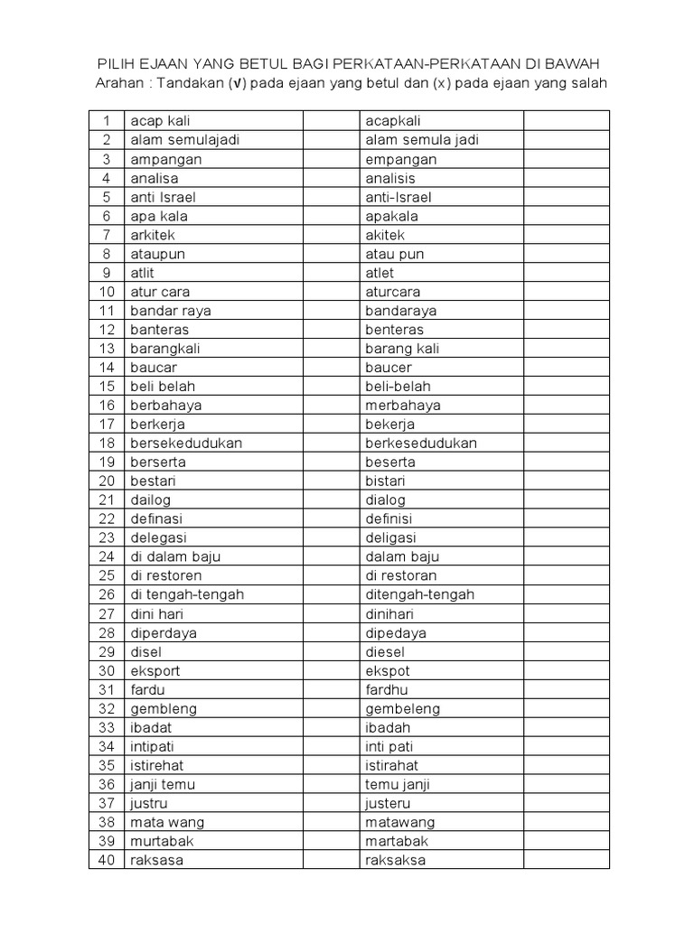 Pilih Ejaan Yang Betul Bagi Perkataan Pdf